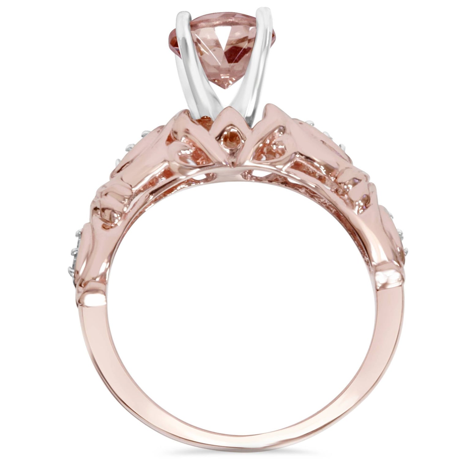 Handcrafted in solid 14k rose gold with a round morganite and eight round-cut diamonds totaling 0.76–1.00 ct. Diamond clarity I2-I3, color H-I.