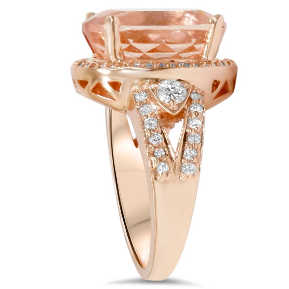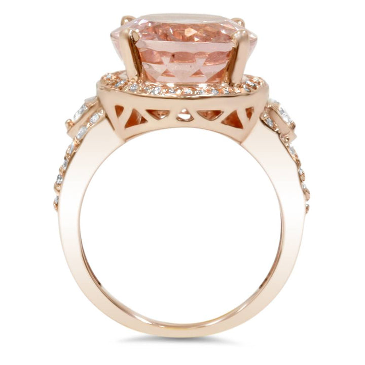 9ct Morganite & Diamond Engagement Ring 14K Rose Gold Halo Split Shank
