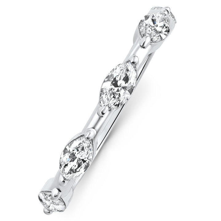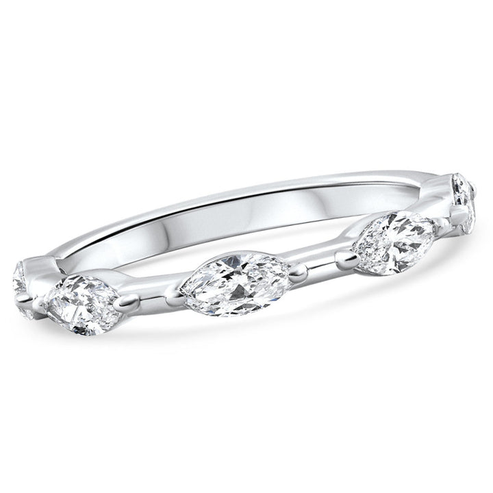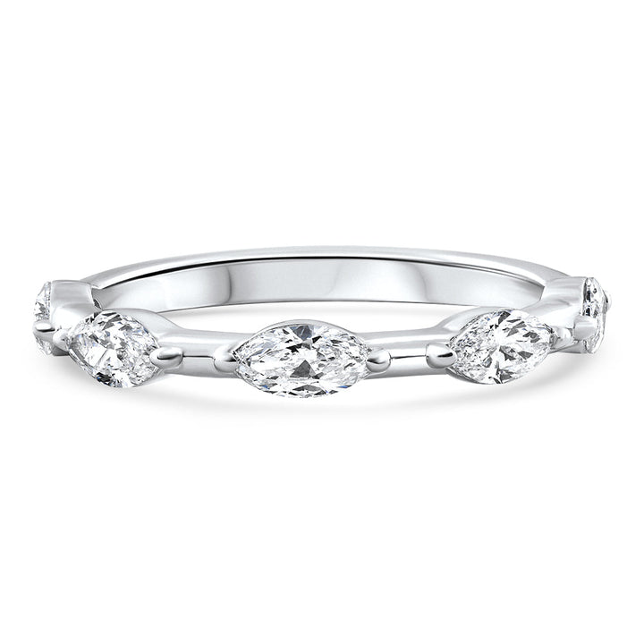 This 0.80Ct Marquise Diamond Wedding Ring Stackable Band in 14K Gold Lab Grown by Pompeii3 features prong-set marquise cut lab-grown diamonds in a polished 14k gold mounting. The elegant and modern design is perfect for stacking with other rings or as an accent to your engagement ring. With its sleek and sophisticated style, this ring adds a unique touch to any jewelry collection.