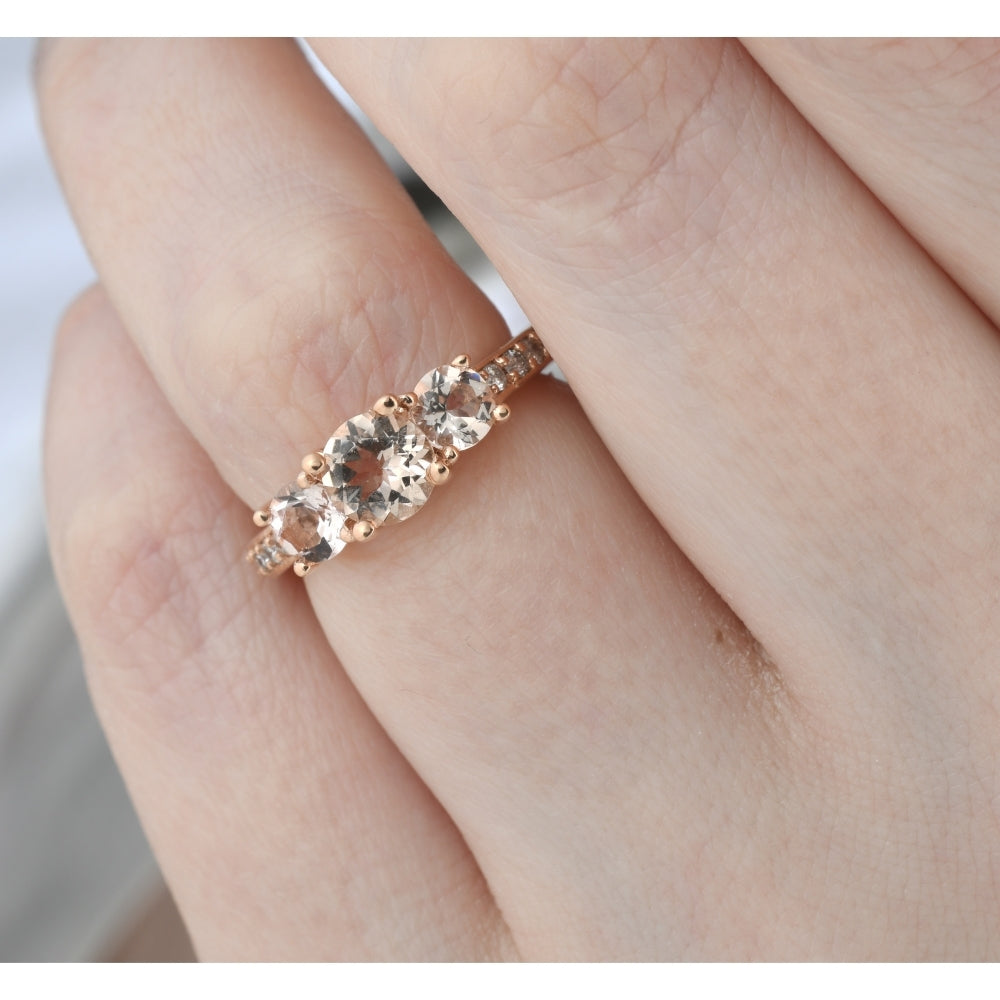 1 1/2 CT Morganite & Diamond 3-Stone Engagement Ring 14K Rose Gold