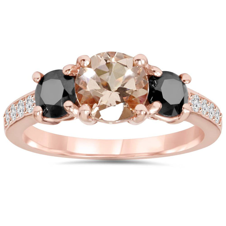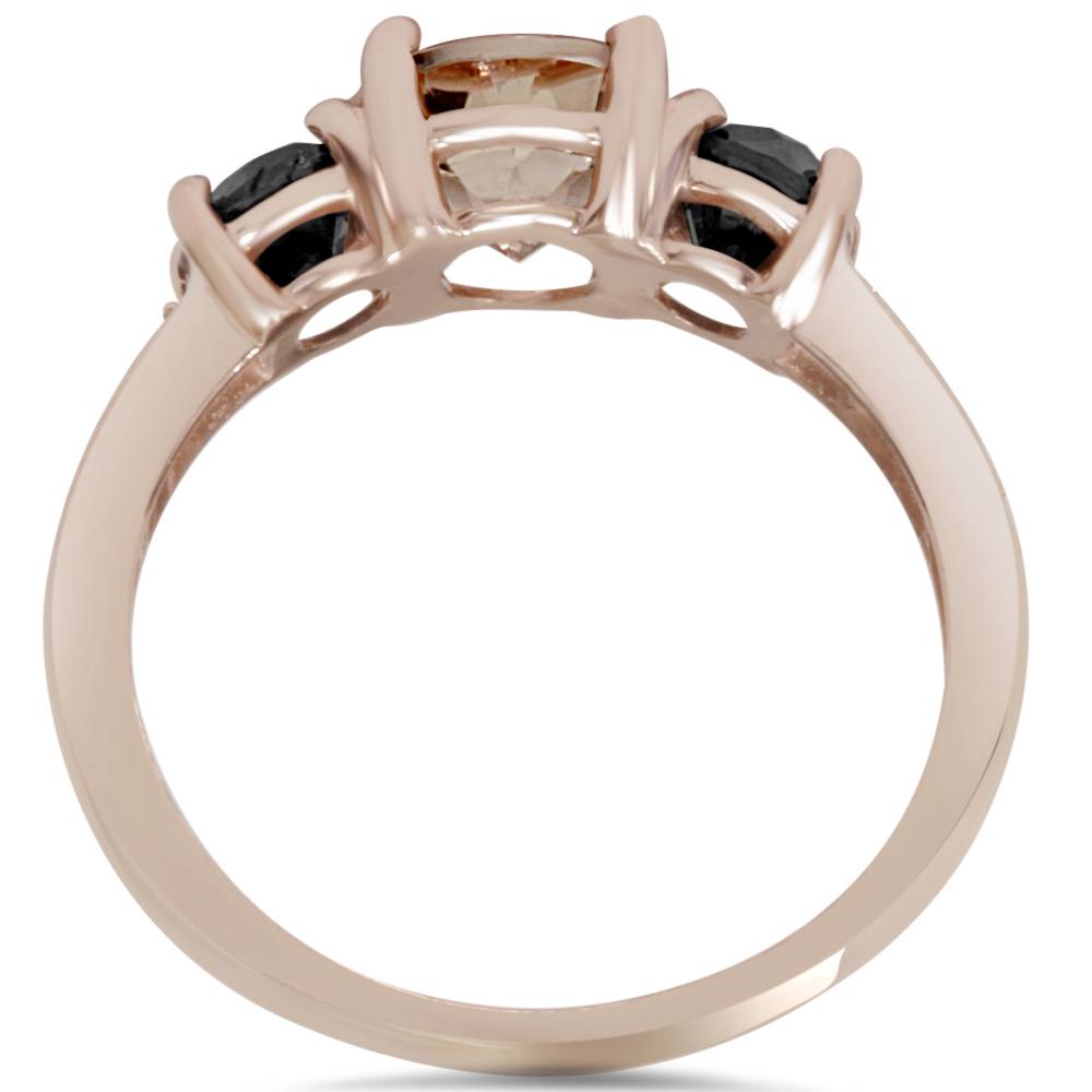 2.10Ct Morganite & Black Diamond Engagement 3-Stone Ring 14K Rose Gold