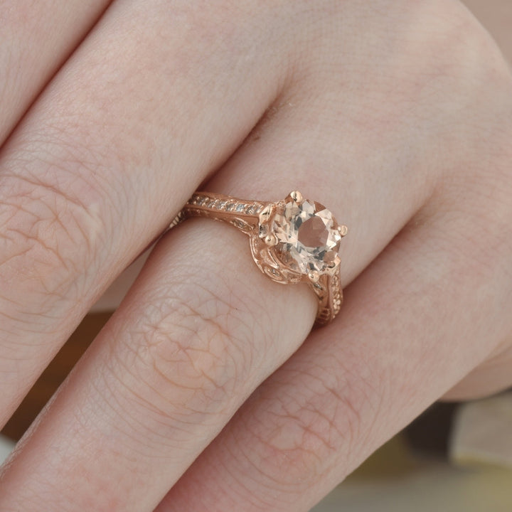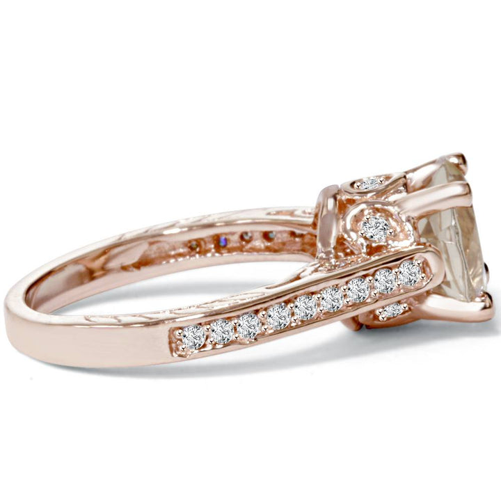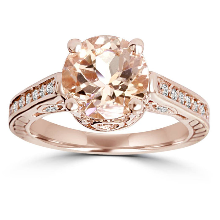 2 Carat Morganite & Diamond Vintage Engagement Ring 14K Rose Gold