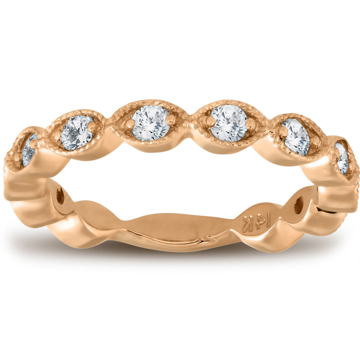 3/8 ct Vintage Diamond Stackable Wedding Ring Women's Stackable Band 14k Gold