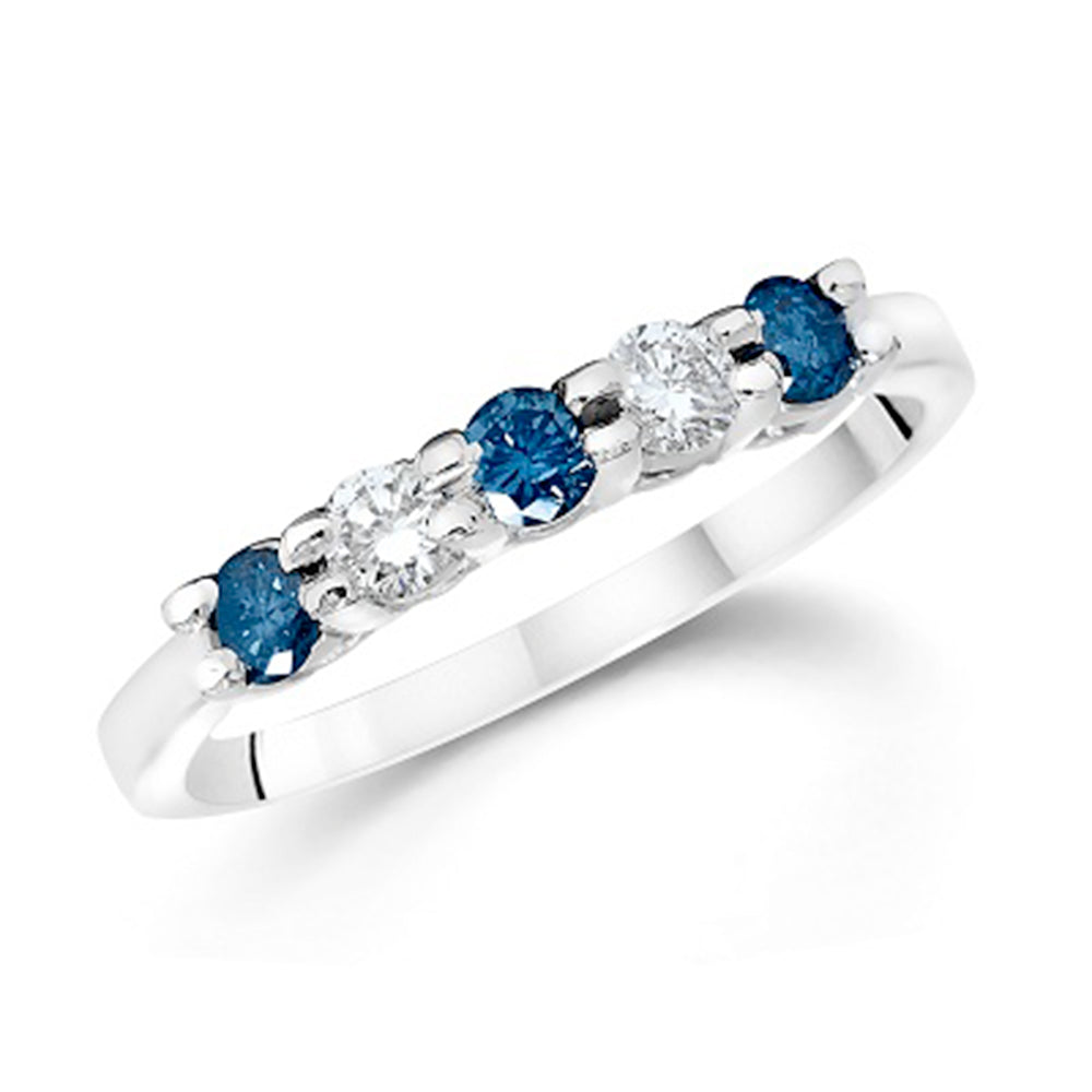 3/4Ct Blue & White Diamond Five Stone Wedding Ring in White Gold