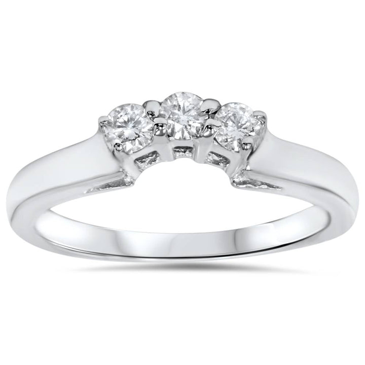 This 14K 1/4ct Diamond Wedding Anniversary Curved Guard Ring by Pompeii3 is designed to gracefully frame your solitaire engagement ring. Featuring three round brilliant cut natural diamonds, its elegant curve enhances both sparkle and symmetry for timeless sophistication.