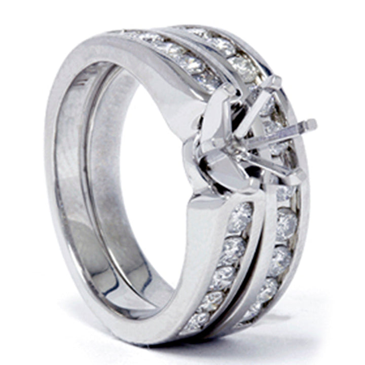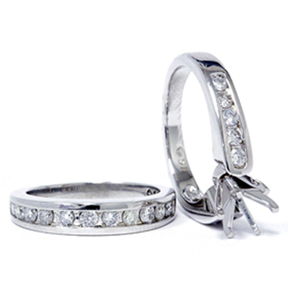 This 1ct Diamond Engagement Matching Wedding Ring Setting in 14K White Gold by Pompeii3 is a beautiful and classic set. The engagement semi-mount and matching wedding band feature channel-set diamonds in solid 14k white gold. The setting is designed to hold any stone up to 1ct, making it a versatile and timeless choice for your engagement and wedding bands.