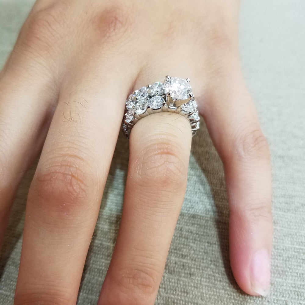 This 9 1/2ct Diamond Eternity Engagement Ring Wedding Set by Pompeii3 is the ultimate statement of luxury and commitment. Featuring a 1 1/2ct center diamond and two dazzling four-carat eternity bands.
