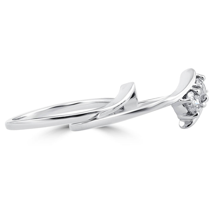 Crafted in solid 14k white gold with 21 round-cut natural diamonds totaling 1 carat. Diamond clarity I2-I3, color G-H. Fits a 6-6.5mm round center stone.