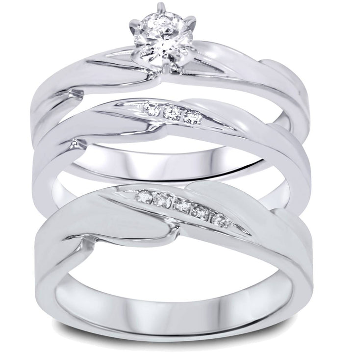 1/3ct Diamond Engagement Wedding Ring Trio Set 10K White Gold