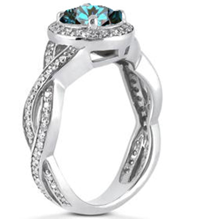 3/4ct Pave Halo Blue Diamond Engagement Ring 14K White Gold