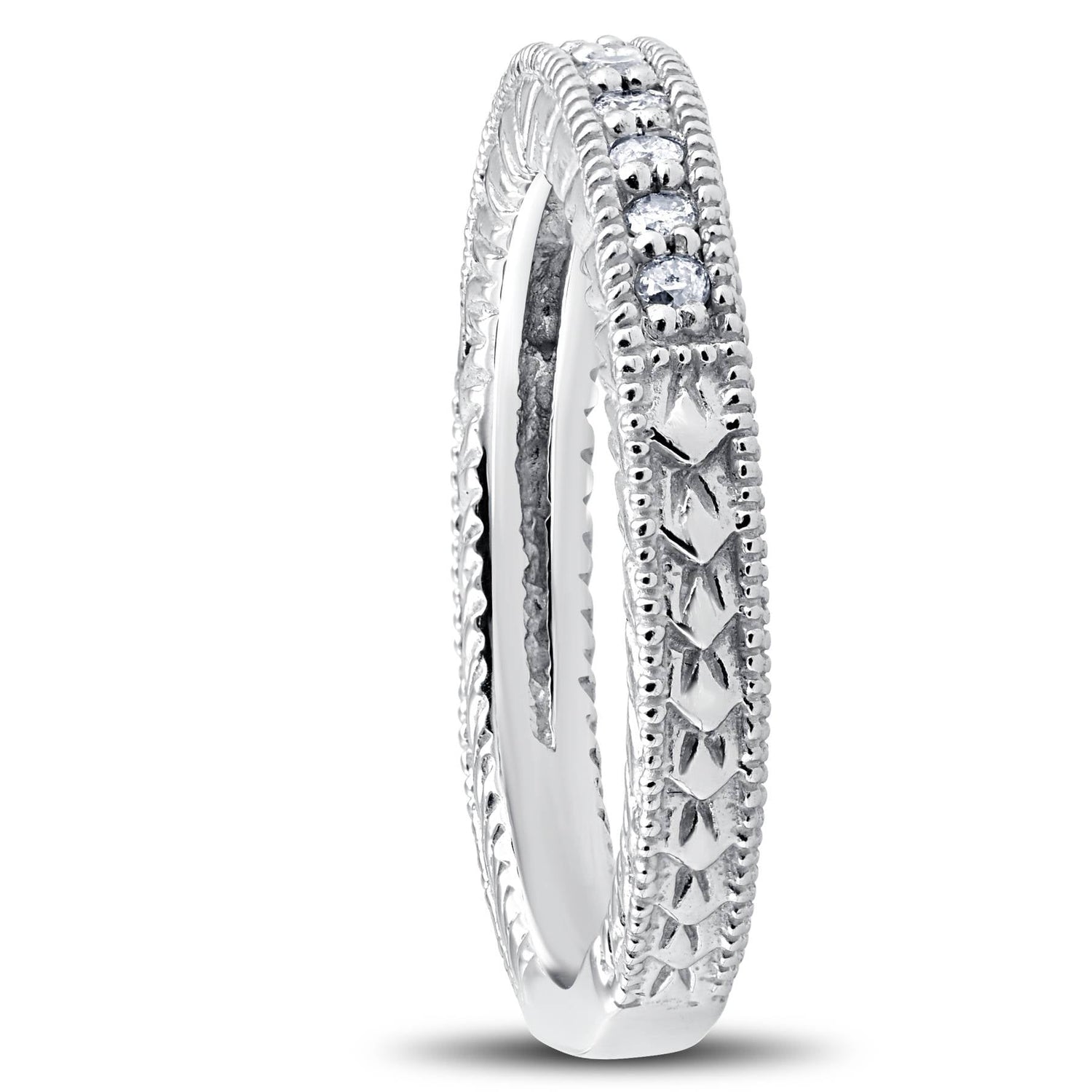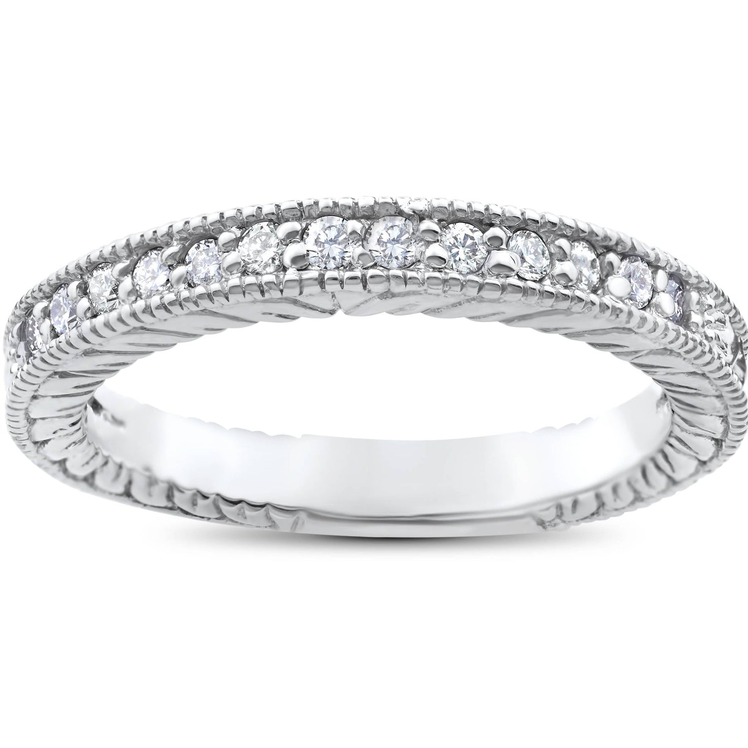 1/5ct Heirloom Diamond Vintage Wedding Ring 14K White Gold Women's band