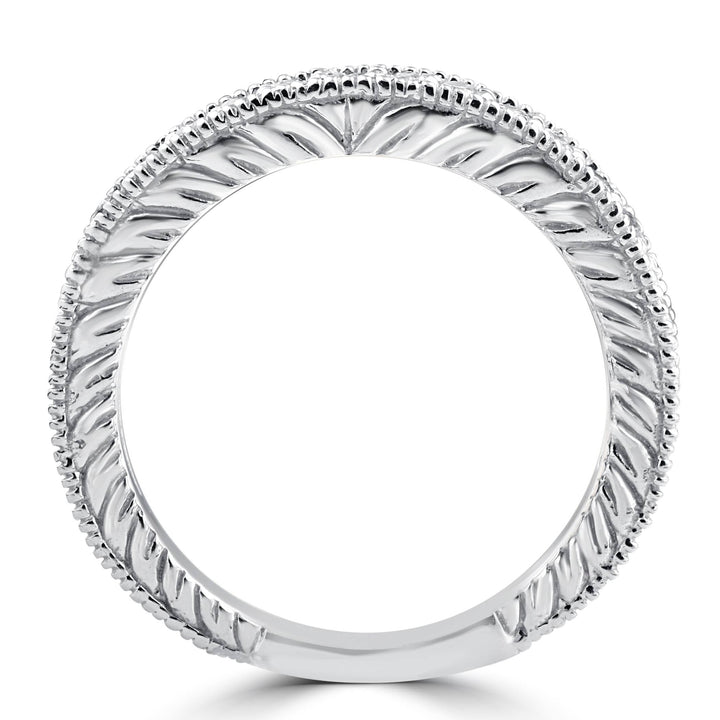 This 1/5ct Heirloom Diamond Vintage Wedding Ring by Pompeii3 exudes timeless charm. Featuring 13 round natural diamonds in a vintage-inspired design, this white gold band is perfect for stacking or wearing as a meaningful wedding band.