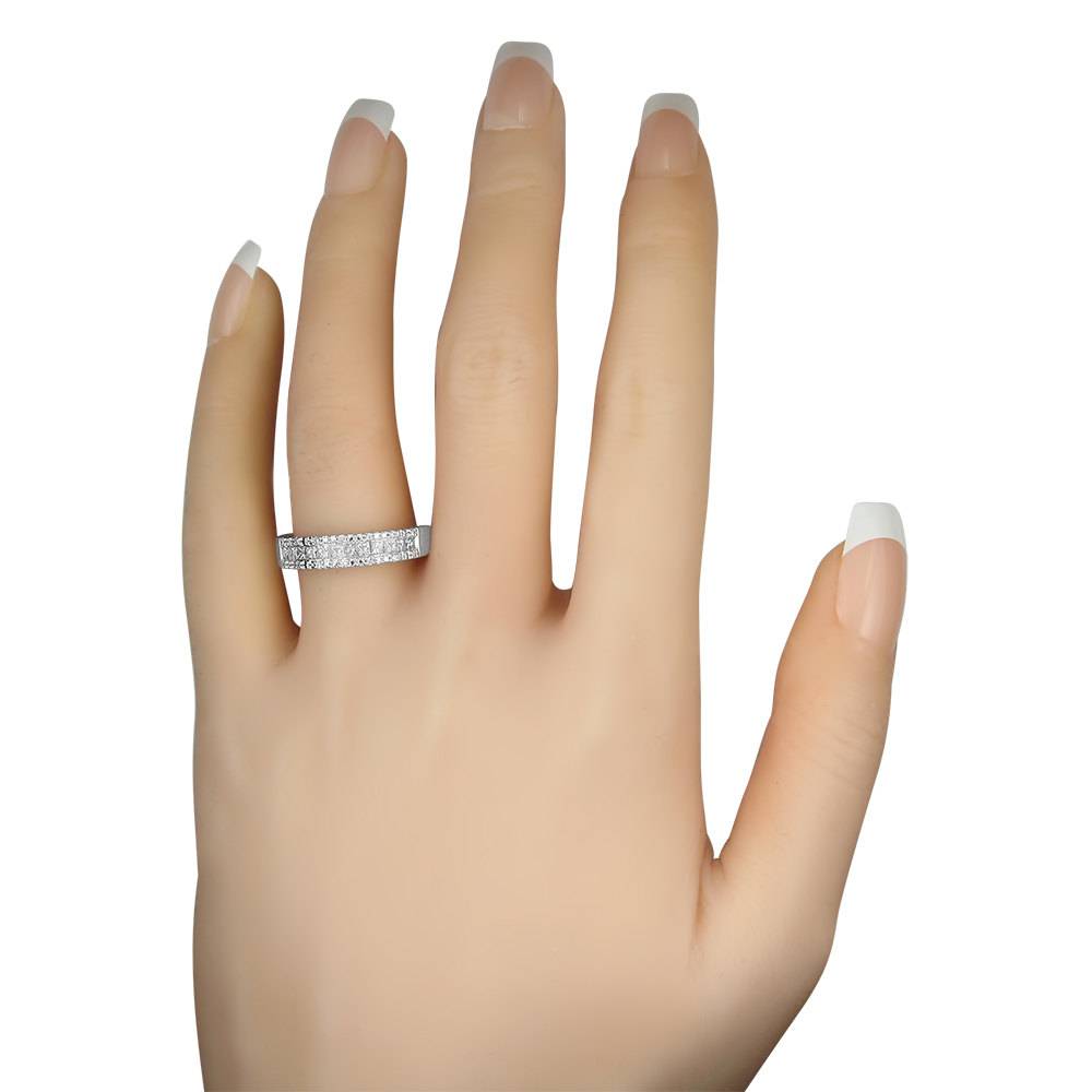 Set in solid 14k white gold with 11 princess-cut diamonds and 26 round-cut diamonds totaling 1/2 carat. Diamond clarity I2-I3, color H-I.
