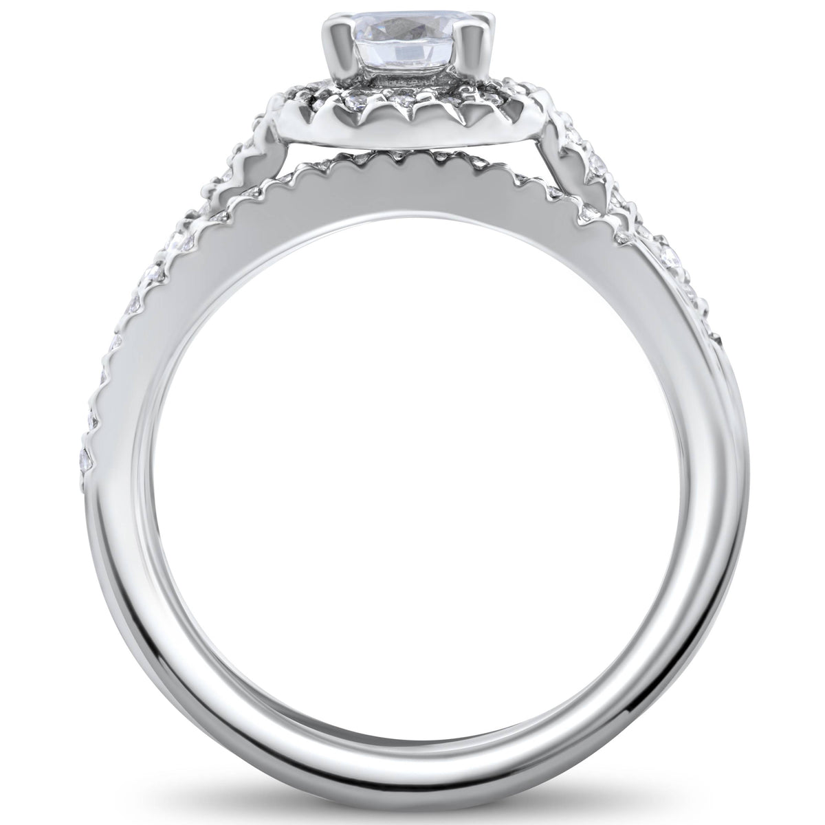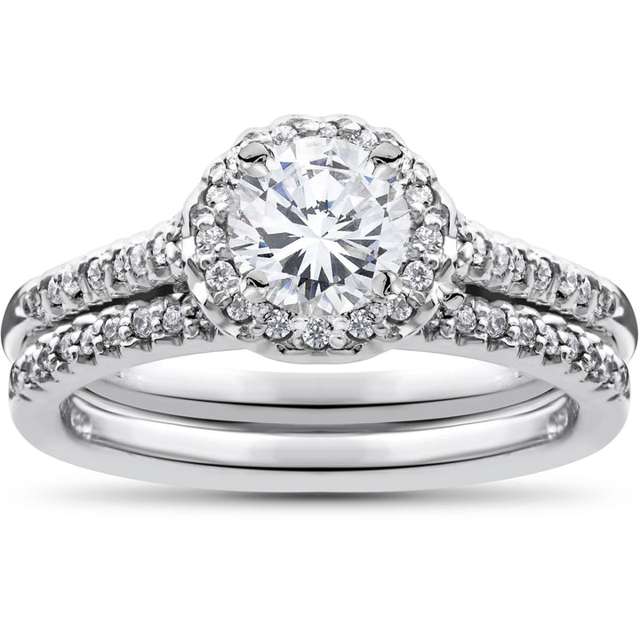 3/4ct Diamond Halo Wedding Engagement Ring Set 10K White Gold