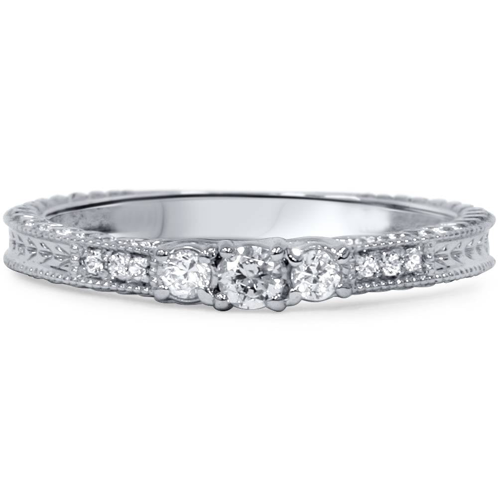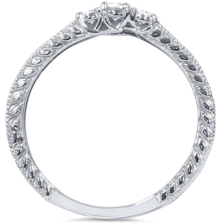 1/4ct Vintage Three Stone Round Diamond Engagement Ring 14K White Gold