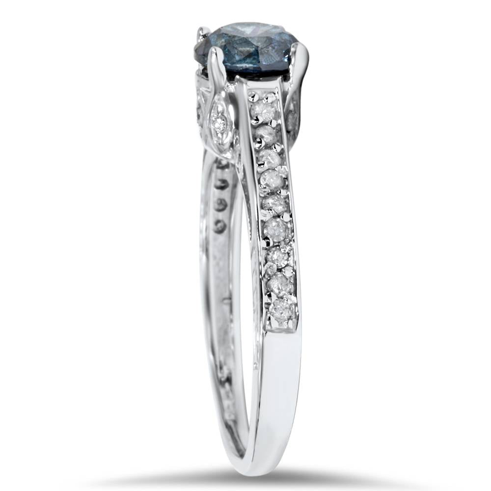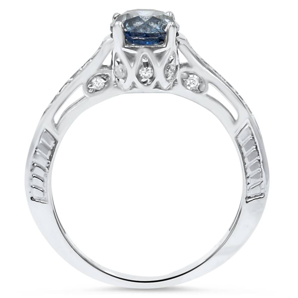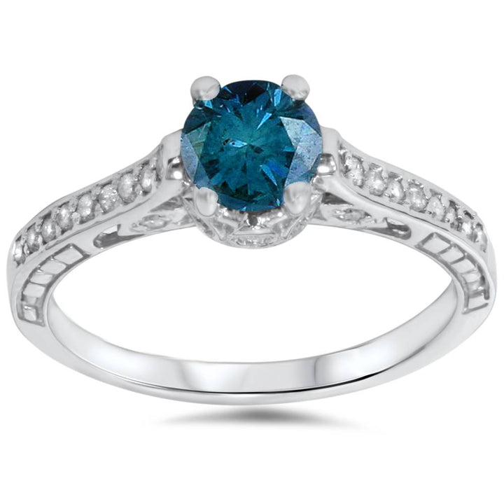 1 1/4ct Vintage Treated Blue Diamond Engagement Ring White Gold Round Solitaire