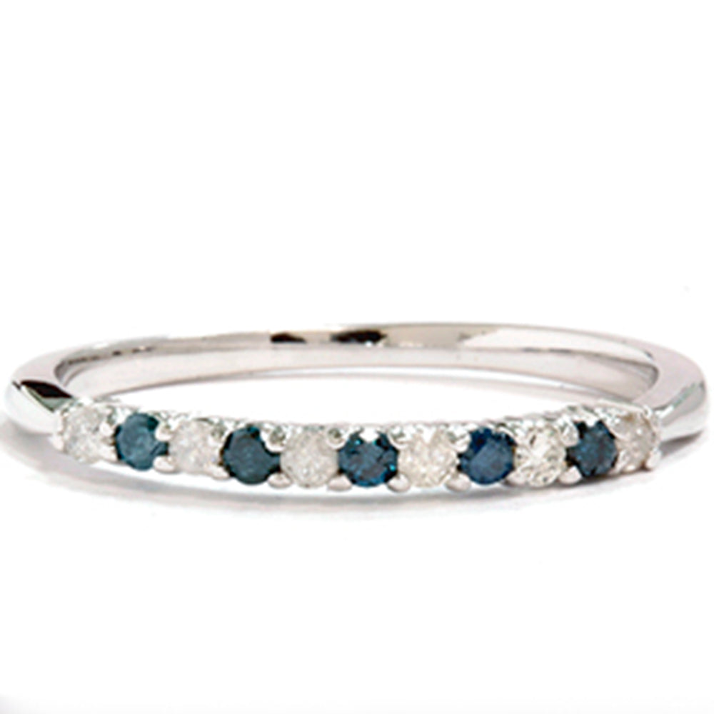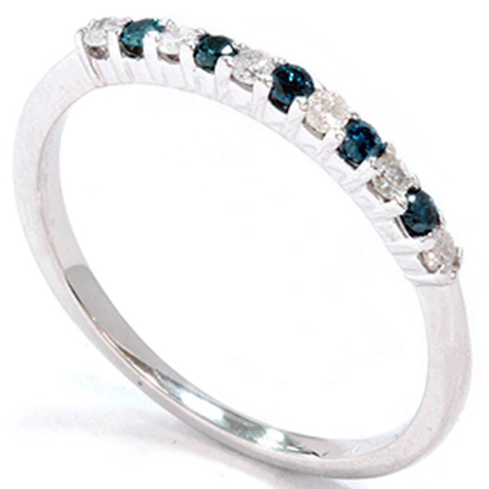 1/4ct Blue & White Diamond Anniversary Ring 14K White Gold