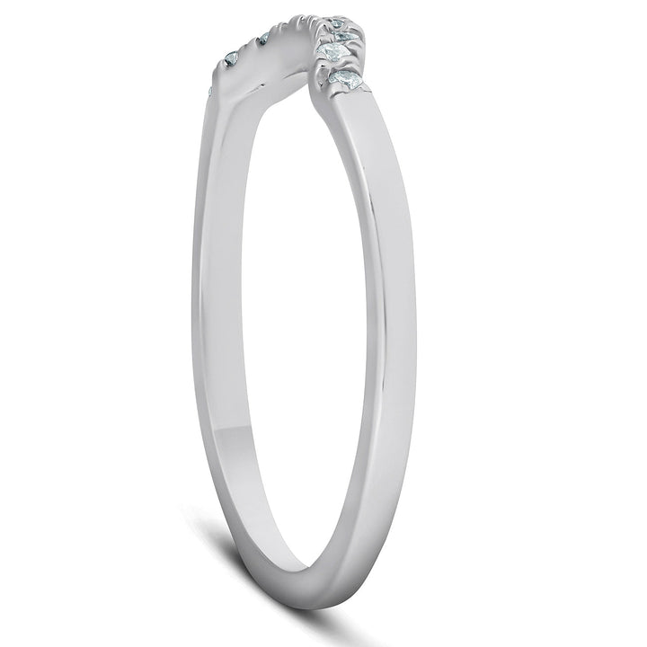 1/15ct Curved Contour Notched Diamond Wedding Ring 14K White Gold
