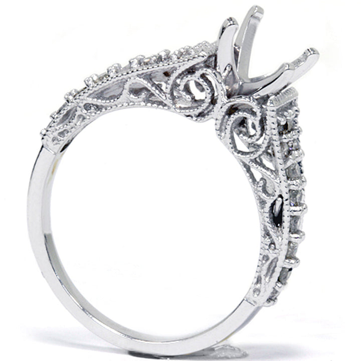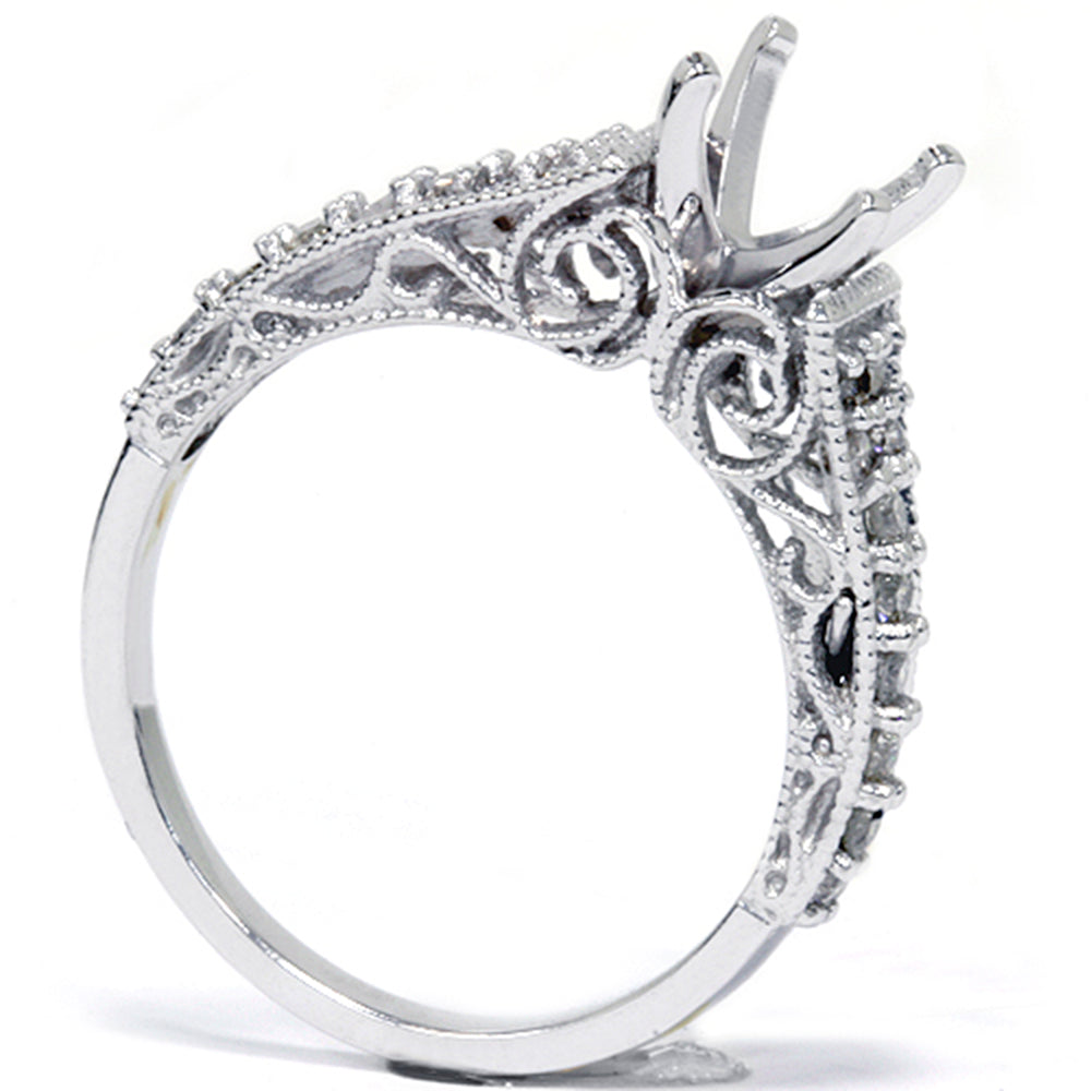 3/8 ct Vintage Diamond Engagement Ring Mount 14K White Gold