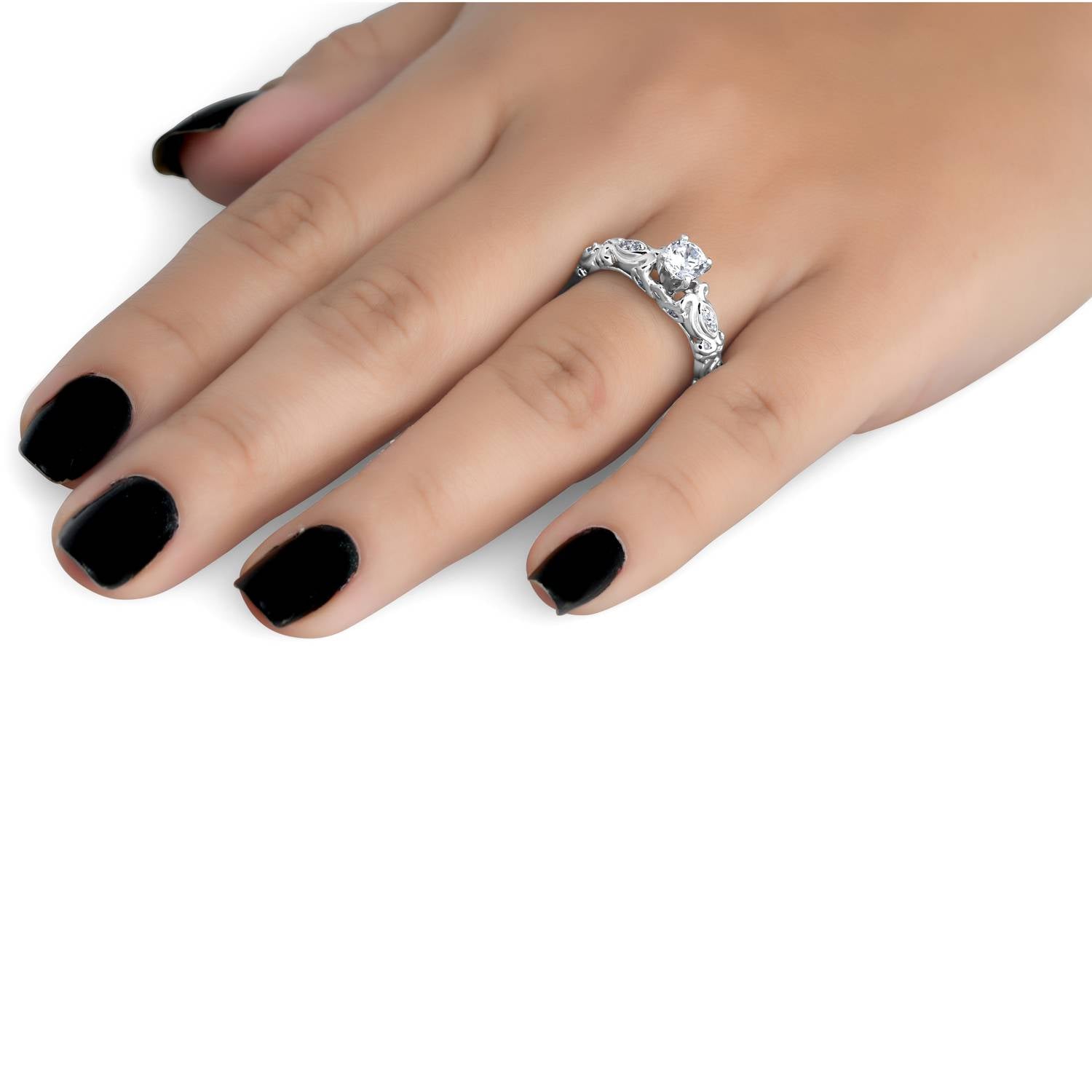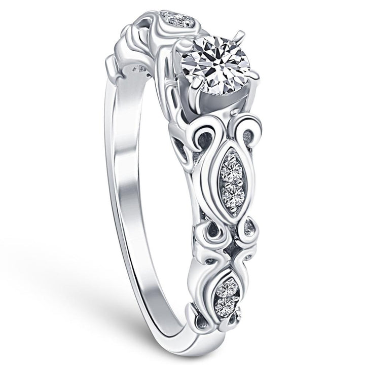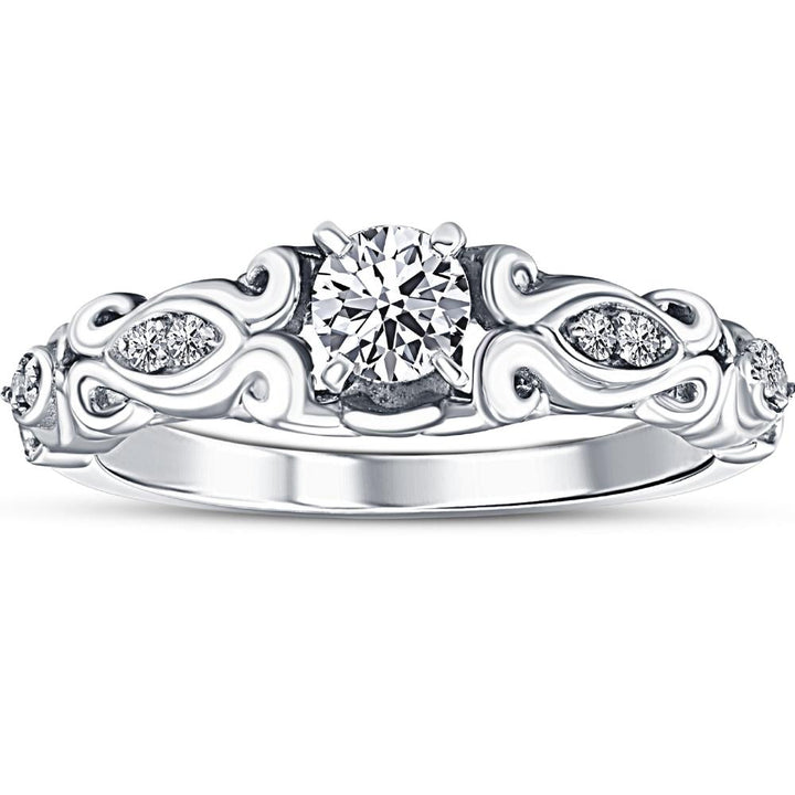 1/2 CT Vintage Diamond Engagement Ring 14K White Gold
