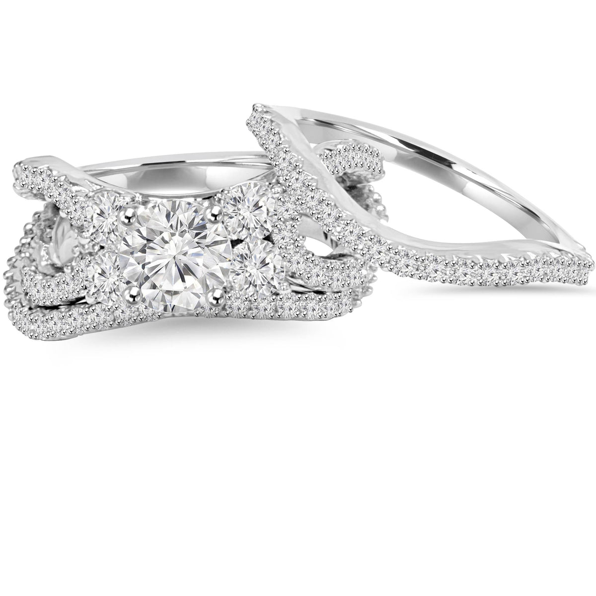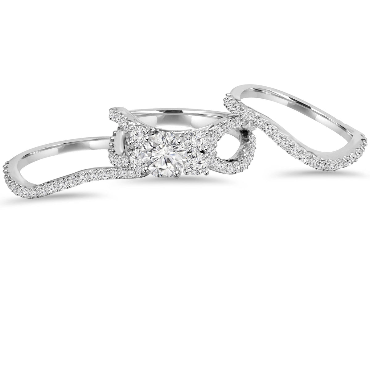 4.00CT Diamond Engagement Trio Wedding Ring Set 14K White Gold