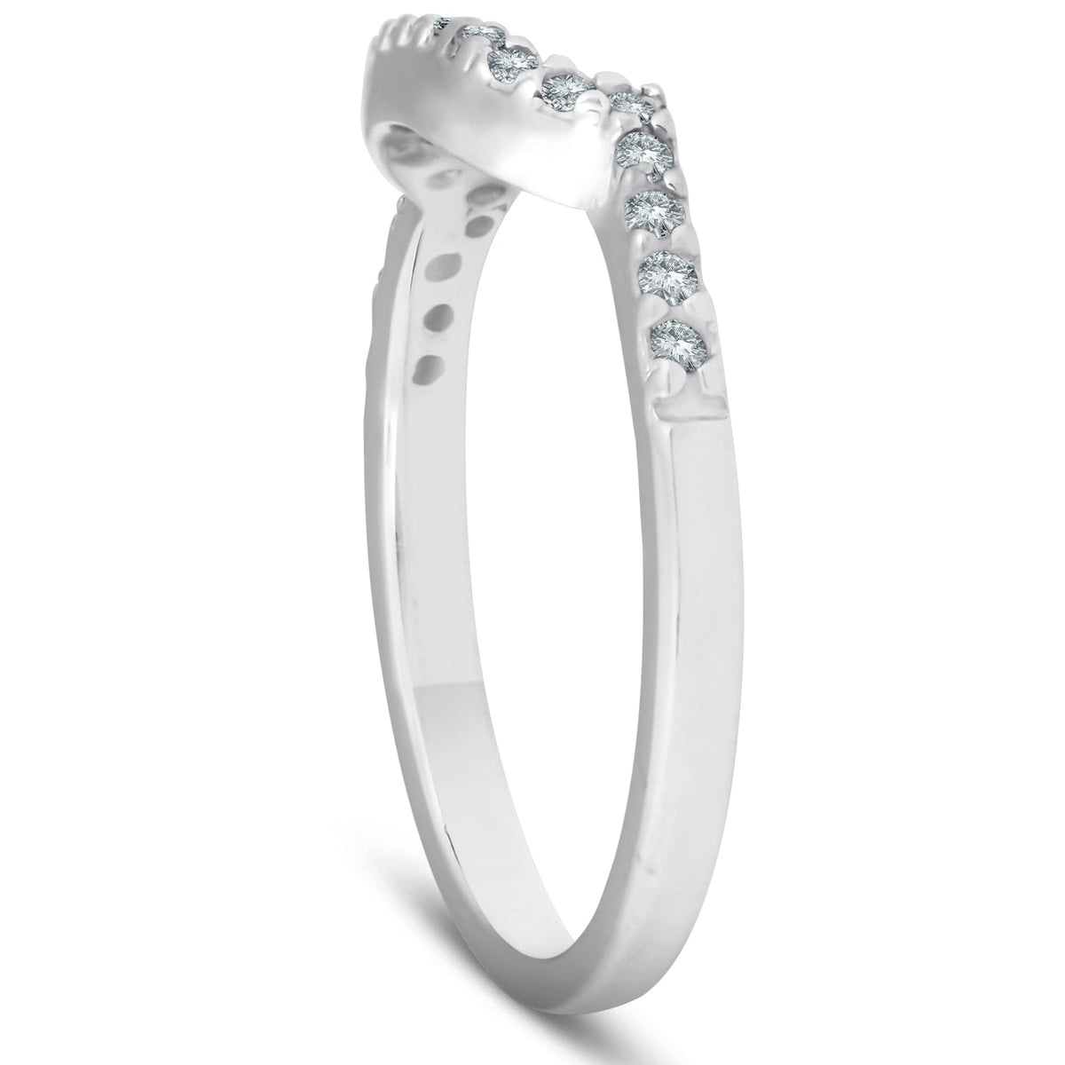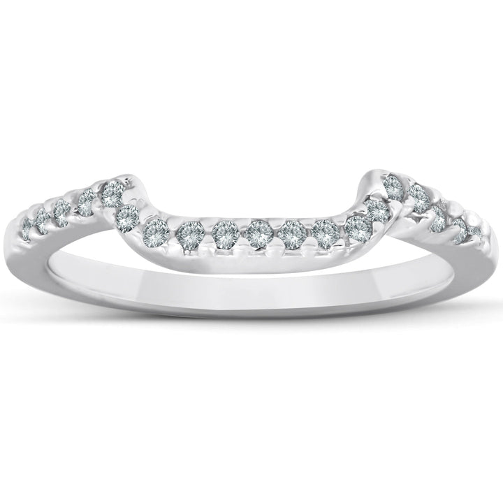 1/6ct Curved Notched Diamond Wedding Ring 14K White Gold