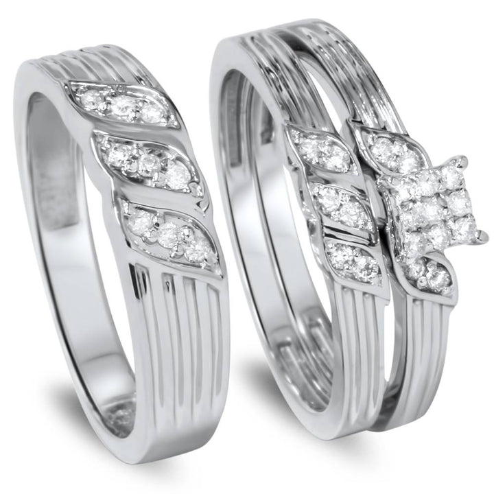 1/3ct Engagement Trio Ring Set 10K White Gold