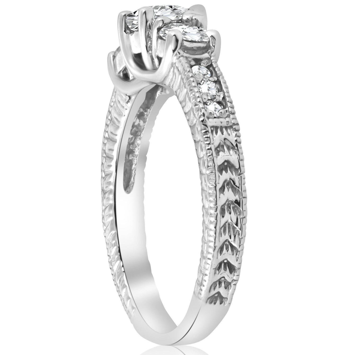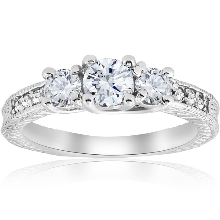 1ct Vintage Diamond Three Stone Engagement Ring 14K White Gold