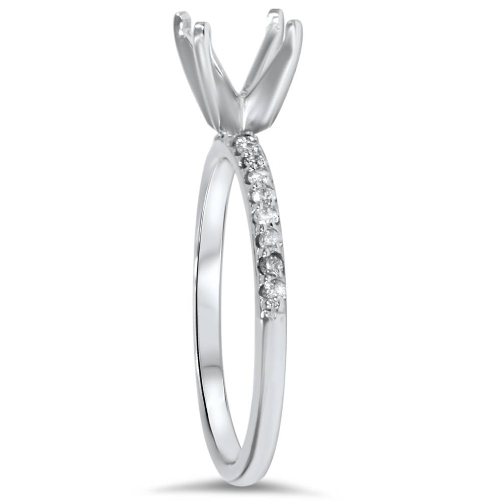Handcrafted in solid 14k white gold with 18 round cut natural diamonds totaling 1/5 carat weight. Mount fits up to a 6.5mm round or square stone.