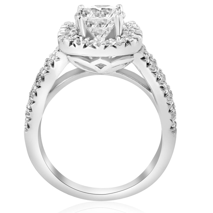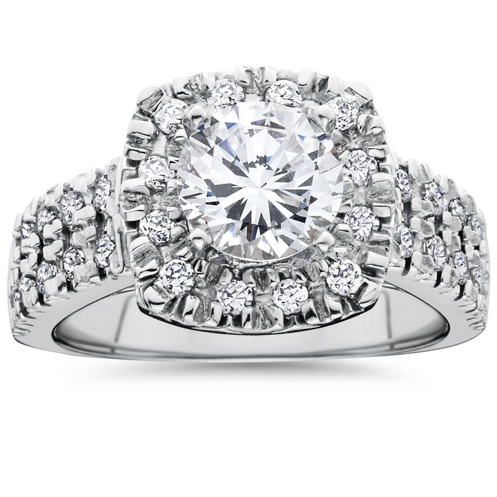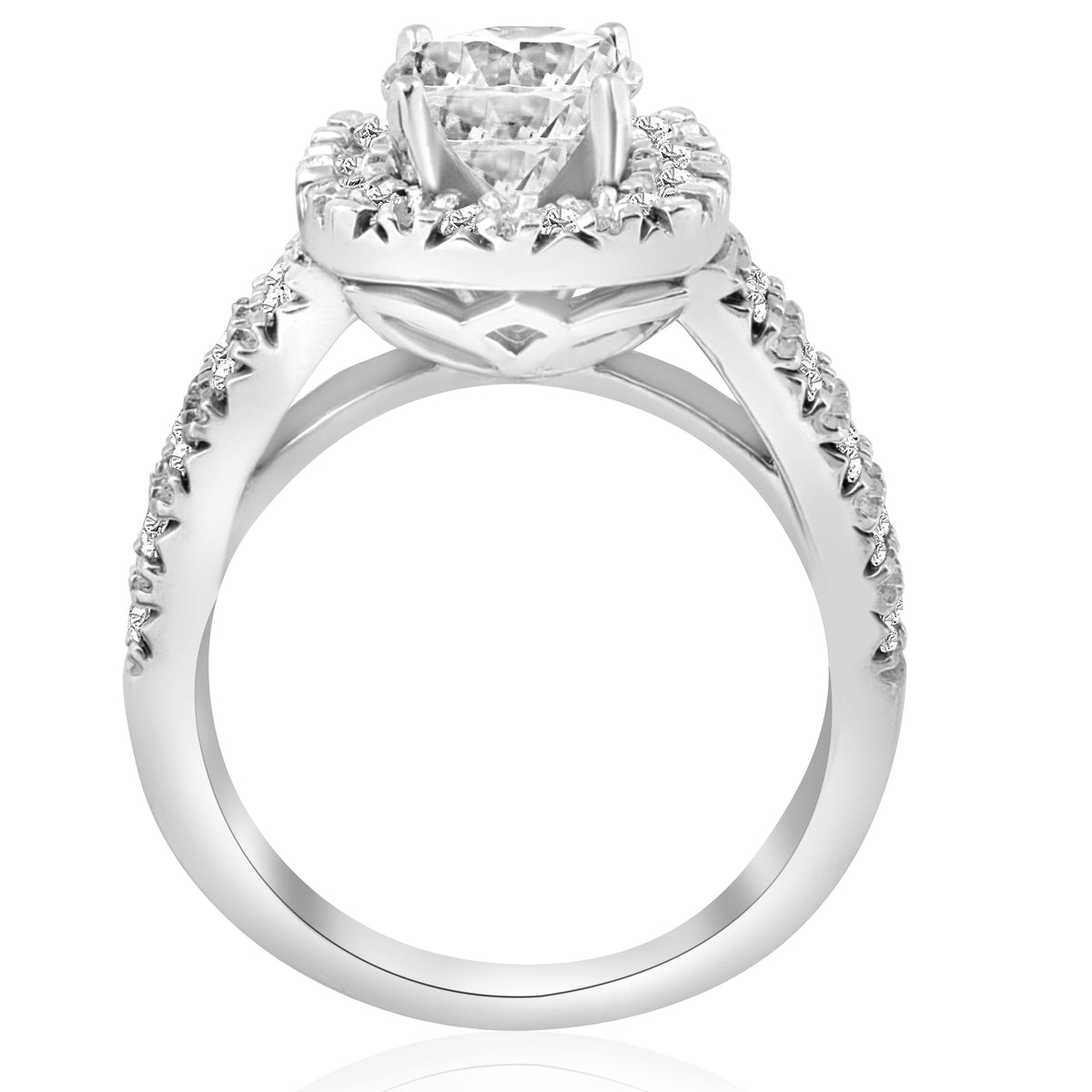 2 Ct Diamond Cushion Halo Engagement Ring Double Row Solitaire White Gold