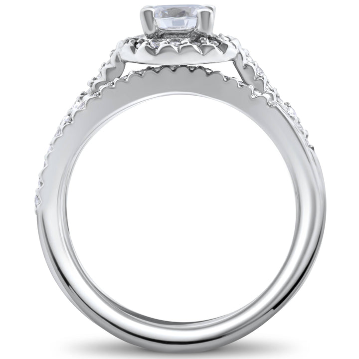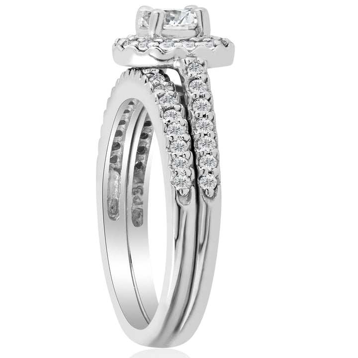 3/4ct Halo Diamond Engagement Wedding Ring Set 14K White Gold