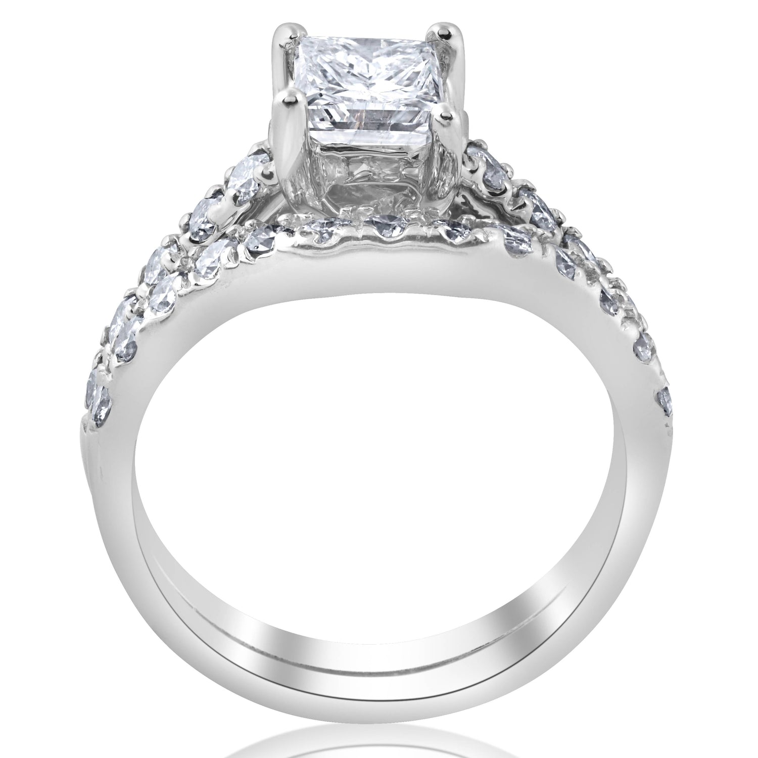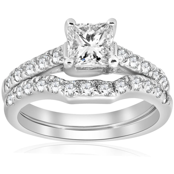 1 1/2 CT Enhanced Princess Cut Diamond Engagement Ring Matching Wedding Band Set