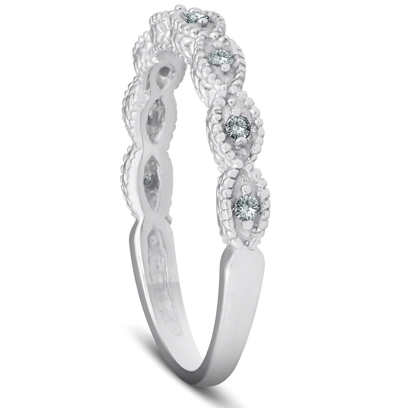 1/10ct Vintage Diamond Wedding Ring 14K White Gold
