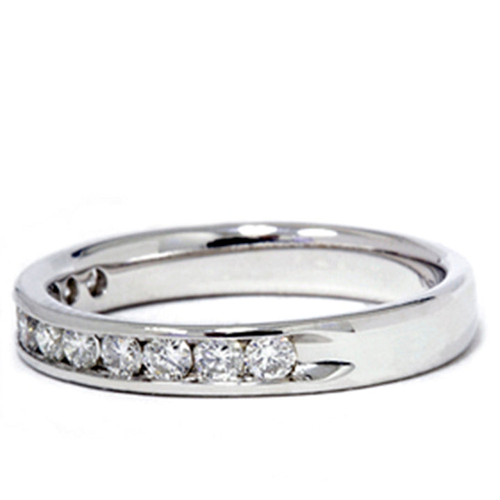 This 1/2ct Diamond Wedding Guard Ring by Pompeii3 is a graceful complement to any engagement ring or stack. Channel-set diamonds sparkle along the curved white gold band, offering timeless beauty and versatility.