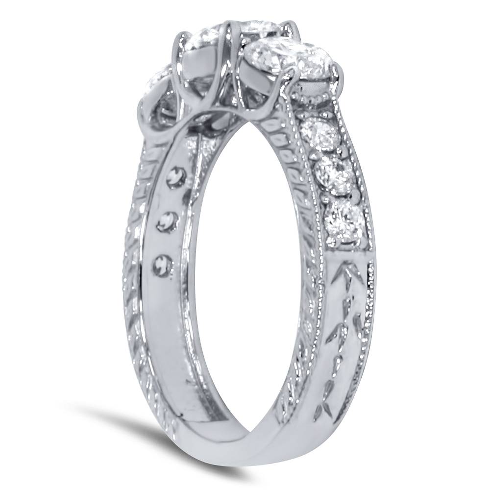 1 1/2 CT Vintage Three Stone Round Diamond Engagement Ring 14K White Gold