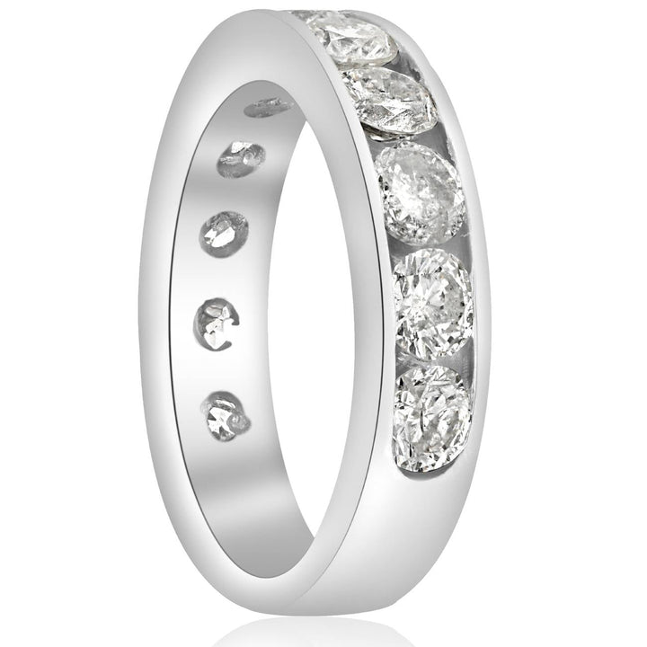 Channel set with round brilliant cut natural diamonds totaling 1.5 carats in solid 14k white gold.