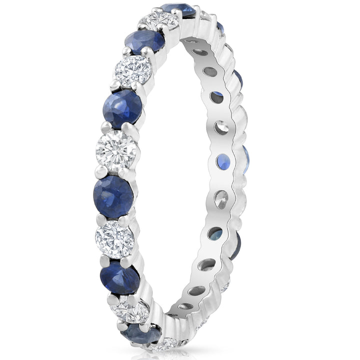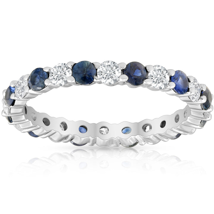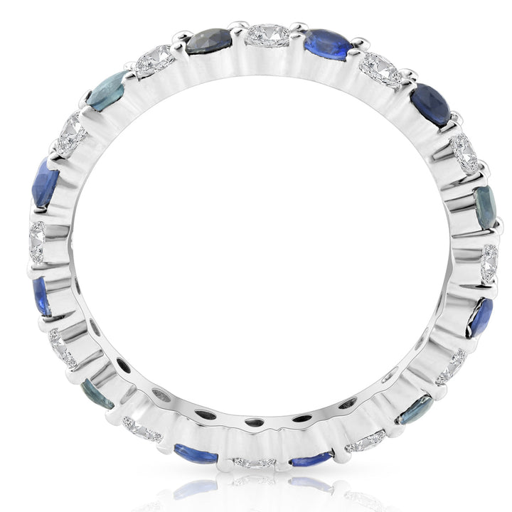 1 1/2 CT Sapphire & Diamond Eternity Wedding Ring 14K White Gold