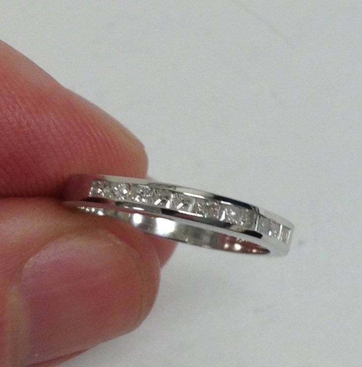 Crafted in solid 14k white gold with princess square cut natural diamonds totaling 3/8ct, channel-set along the band.