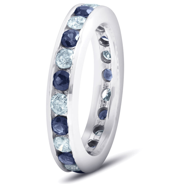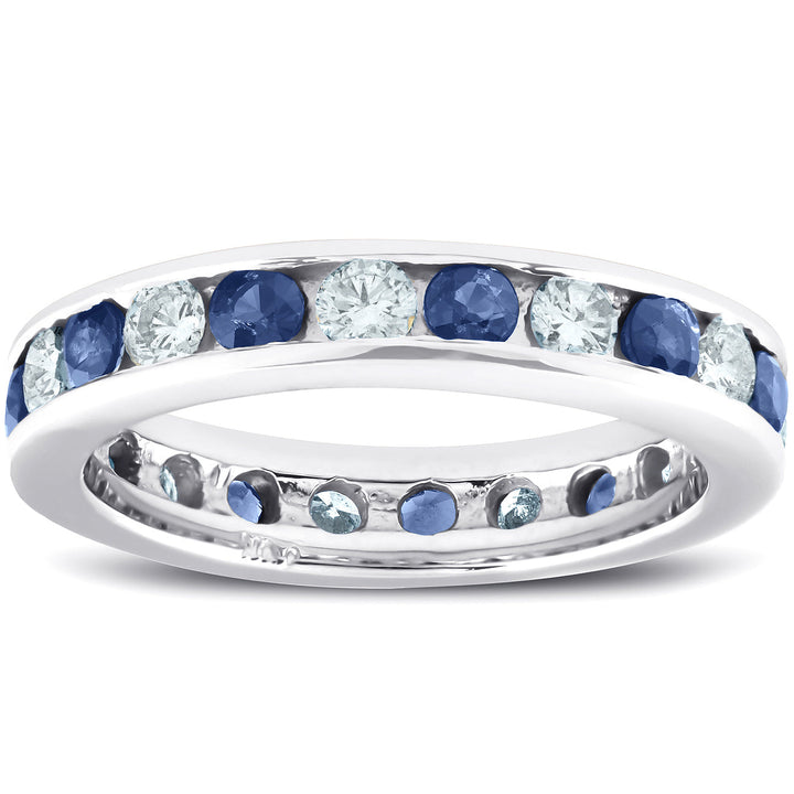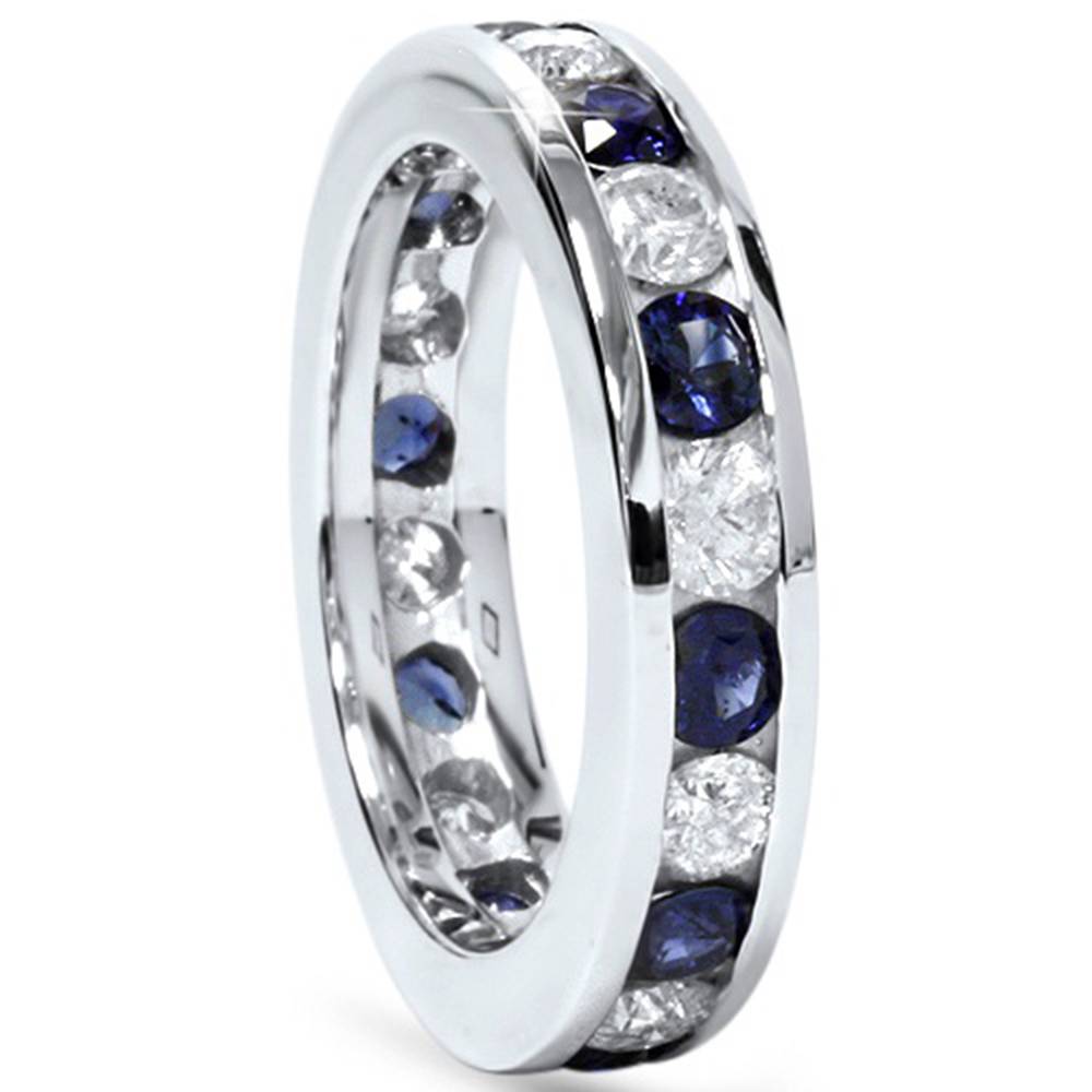 2 CT Blue Sapphire & Diamond Channel Set Eternity Ring 14K White Gold