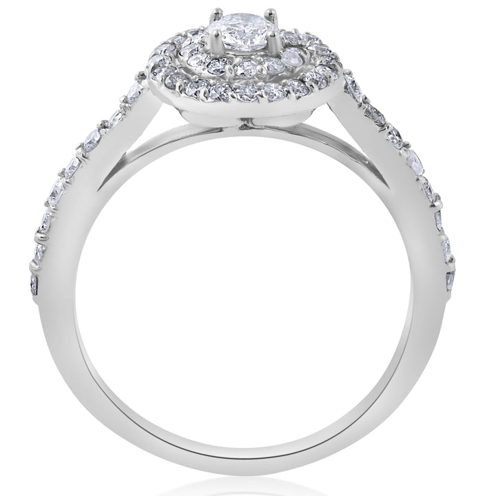 3/4ct Double Halo Round Diamond Engagement Ring 10K White Gold
