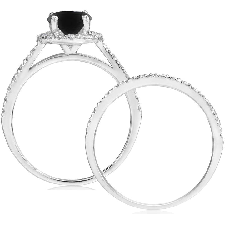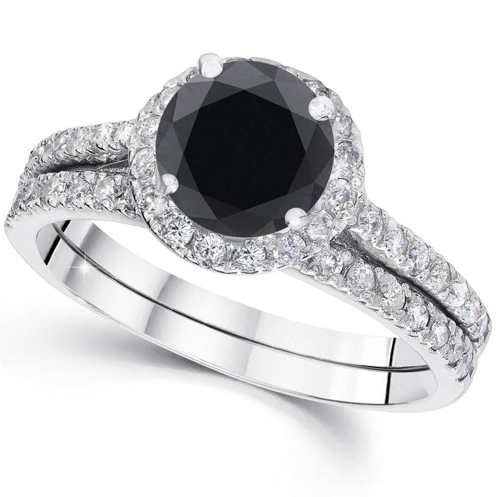 2 1/2 Ct Treated Black Diamond Halo Engagement Wedding Ring Set 14K White Gold