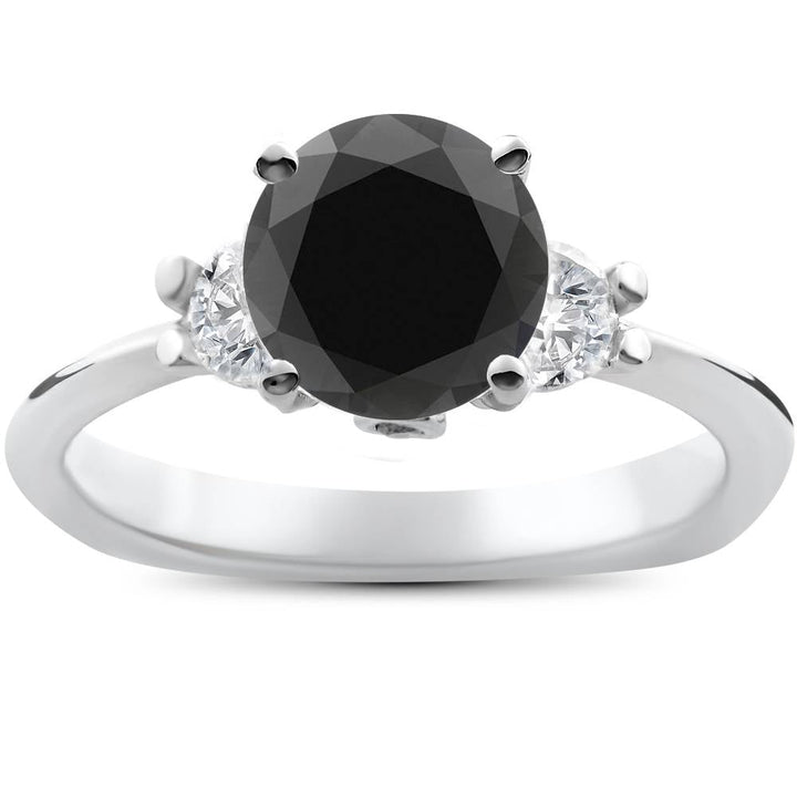 1 3/8 ct Black Diamond Engagement Accent Anniversary Ring 14k White Gold