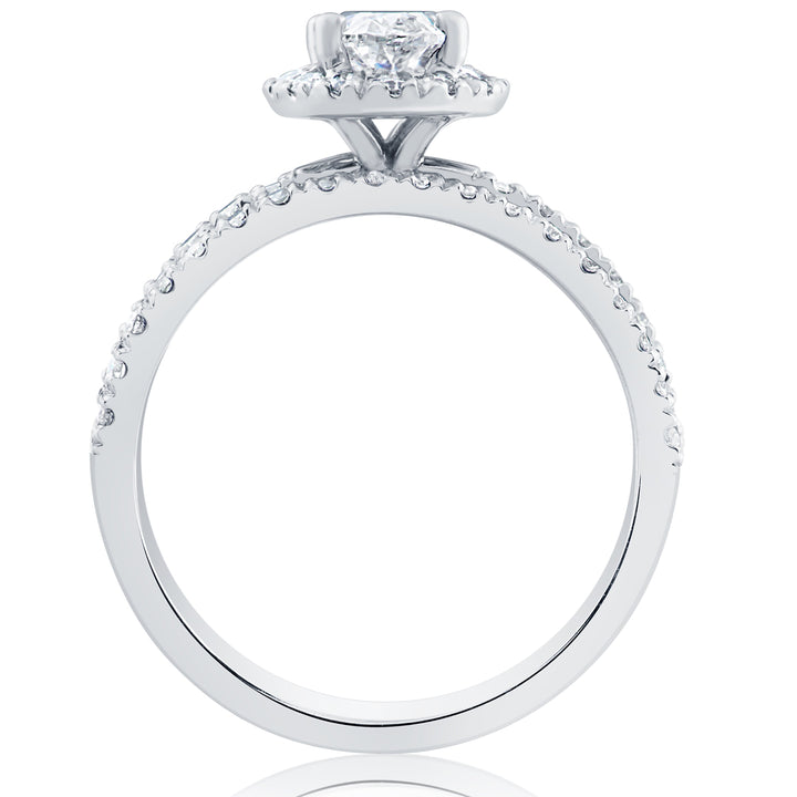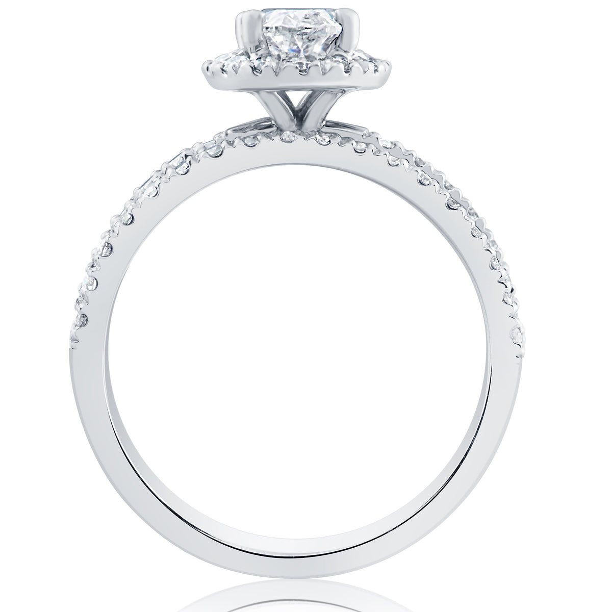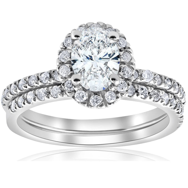 1 1/3 ct Oval Halo Diamond Engagement Wedding Ring Set 14k White Gold
