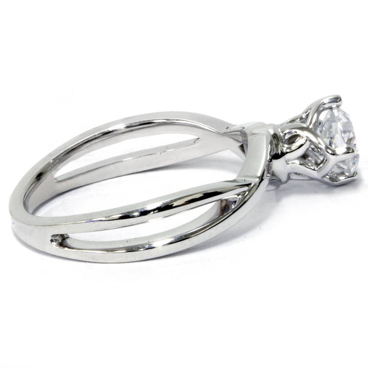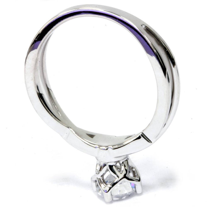 Handcrafted in solid 14k white gold with a 1/2 carat round brilliant-cut natural diamond (I2-I3 clarity, H-I color). Claw setting. Made in the USA.