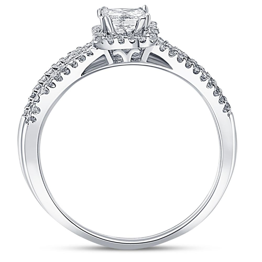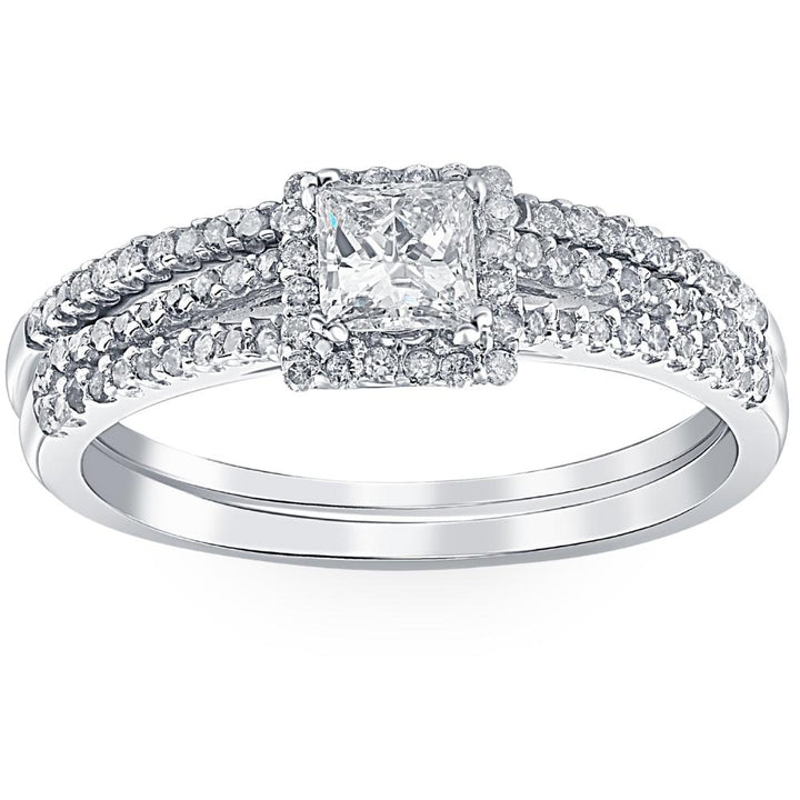 3/4ct Princess Cut Split Shank Engagement Ring Set 14K White Gold