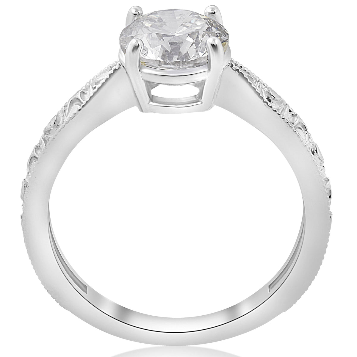 1 1/2 CT Solitaire Vintage Diamond Engagement Ring 14K White Gold