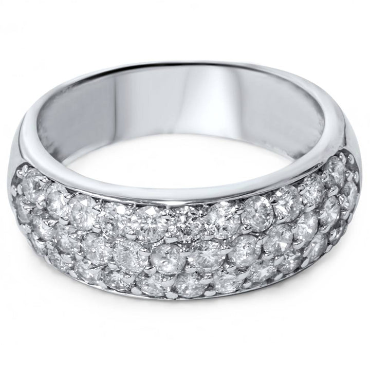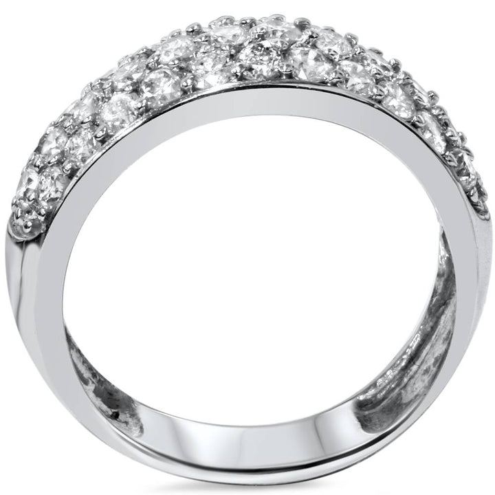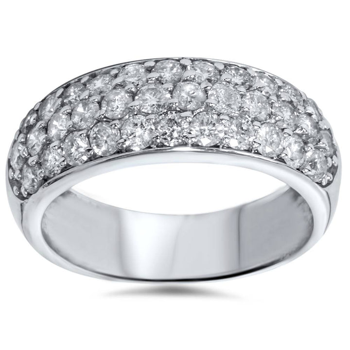 1 1/2 CT Pave Diamond Wedding Anniversary 10K White Gold Women's Wide Band