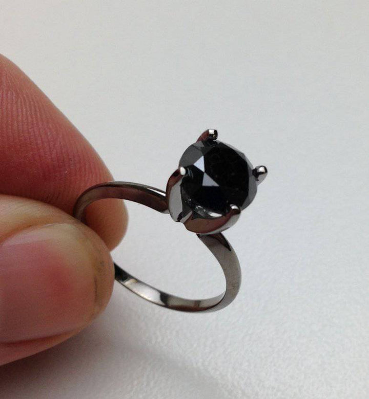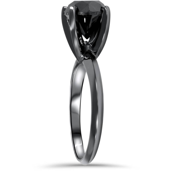 2 CT Black Diamond Solitaire Engagement Ring 14K Black Gold