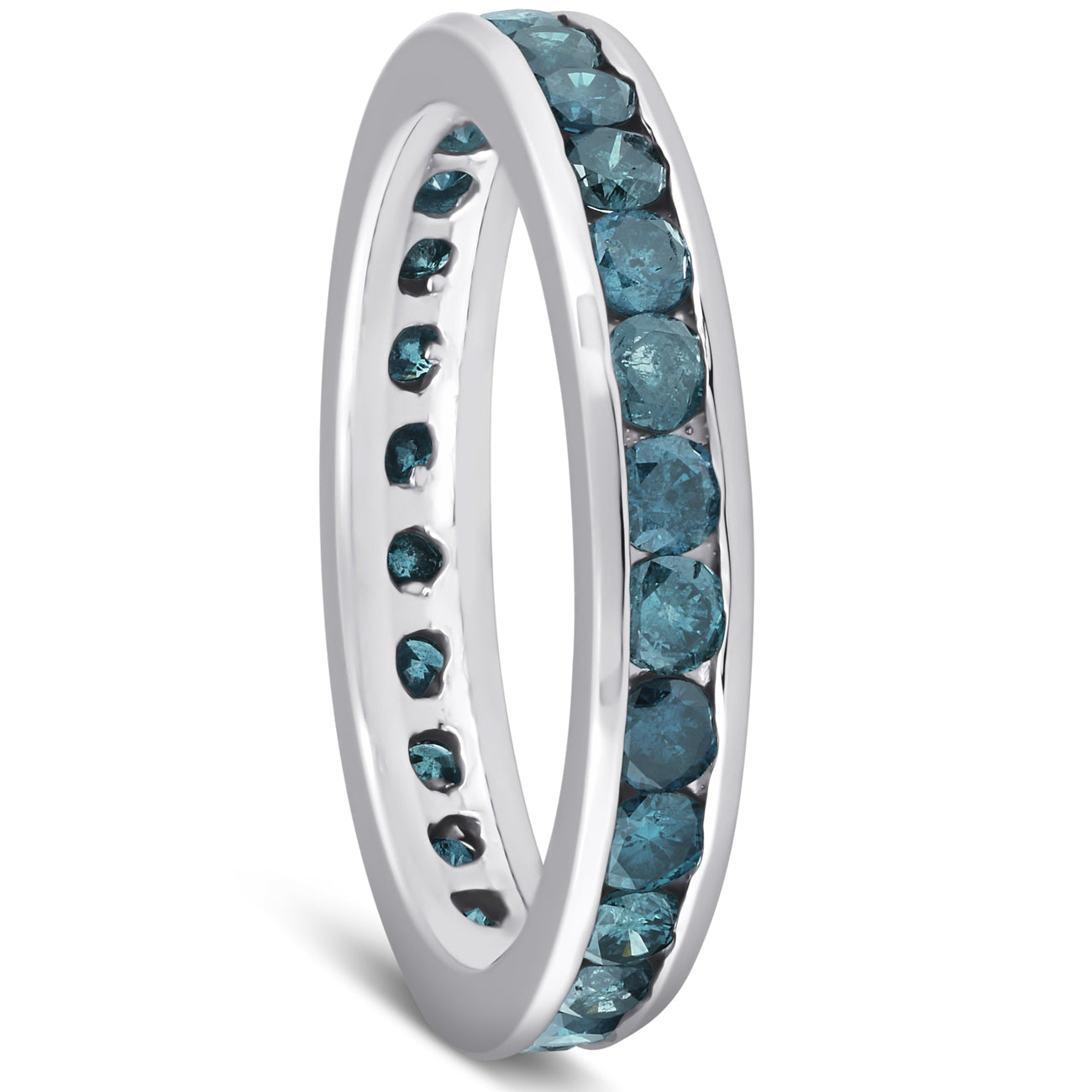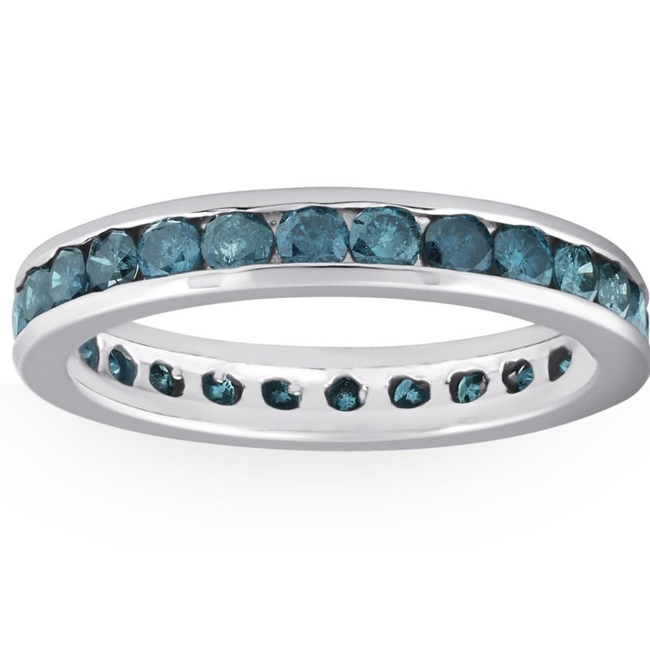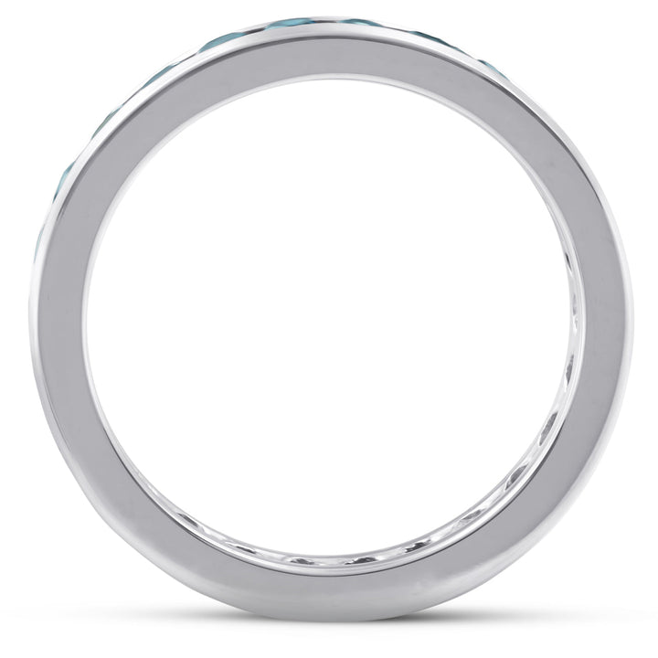 1 1/2 CT Blue Diamond Channel Set Eternity Ring 14K White Gold