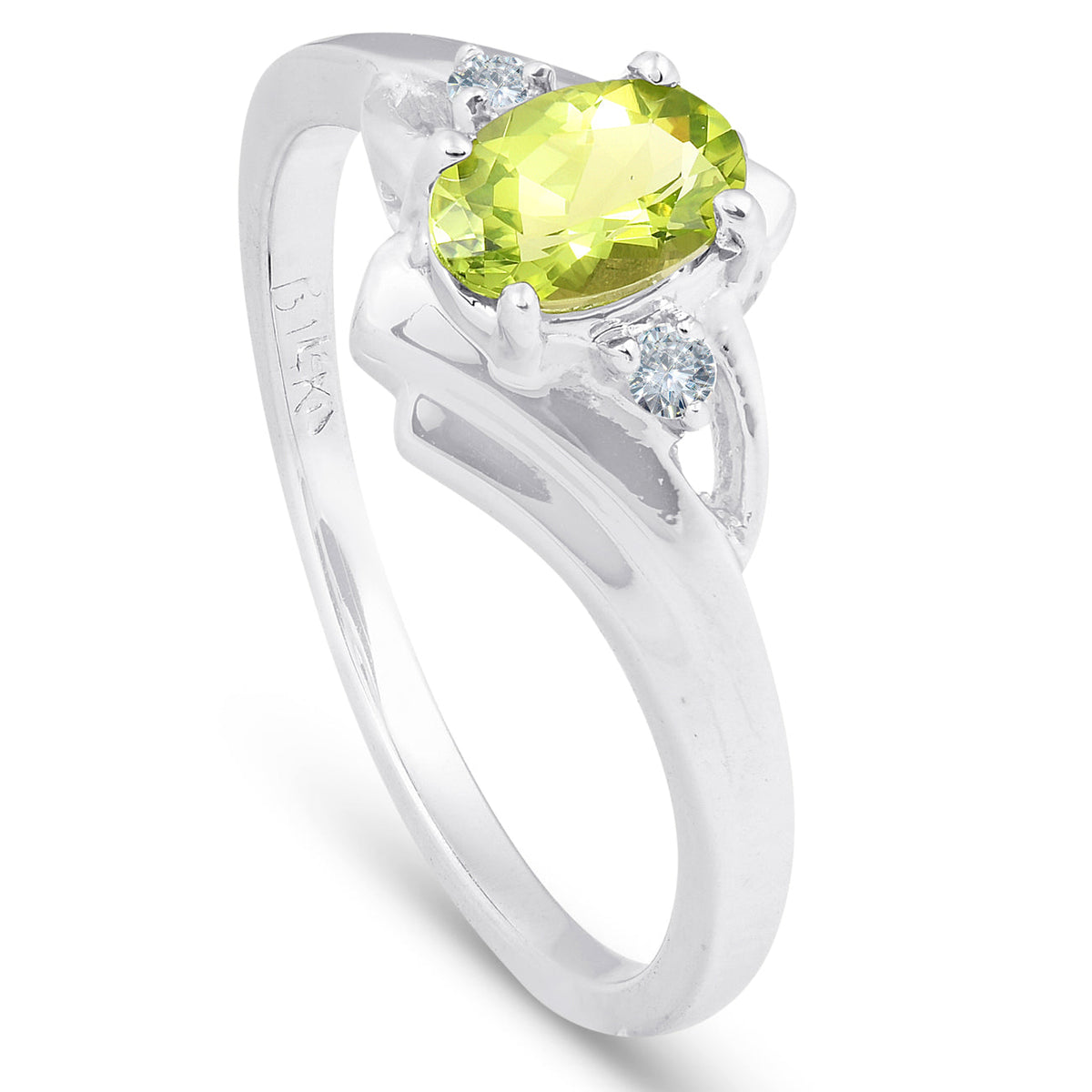 5/8 ct Oval Peridot & Diamond Ring 14K White Gold